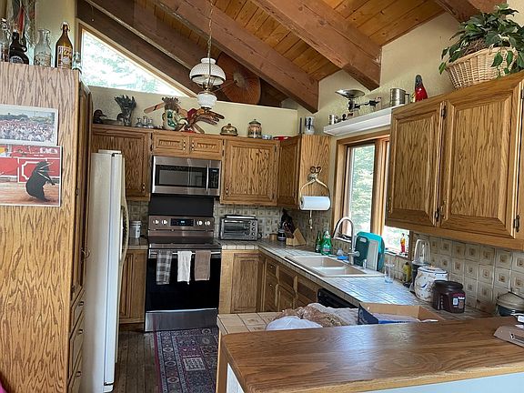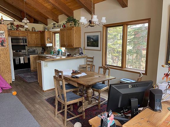 Perfect mountain home, high beams in the living room with huge windows. Open upstairs great room, dinning and kitchen area. Great neighborhood area, quiet and not a lot of traffic. Lots of storage, and newer metal roof. Easy to maintain.