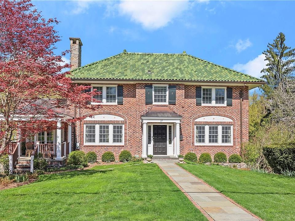 Scarsdale Greenacres gem! Expanded and updated by architect owner, this Center Hall Brick Colonial is ideally located on a tranquil street close to the Greenacres school. This elegant Colonial boasts a beautiful layout with over 5000 square feet of living space, five generous sized Bedrooms on the second floor and three full baths and two half baths.The classic layout and open floor plan creates a wonderful flow for everyday living and easy entertaining. The kitchen family room addition features a Chef's kitchen, oversized island, high-end appliances including a Viking 6 burner stove, oversized eat-in area and family room with a gas fireplace. French doors open to a beautiful bluestone terrace with views of the spacious property with perennial gardens and a wooded preserve beyond. The living room with a wood-burning fireplace adjoins the sunroom which opens to a charming covered bluestone front porch. A tranquil spot to relax with your morning coffee! The exquisite primary bedroom has a 10 foot ceiling, numerous closets and French doors to a balcony overlooking the beautiful yard. The luxurious marble bath has a soaking tub, jetted showers and a radiant heated floor. Four additional bedrooms, 2 new baths (one ensuite) with radiant heated floors complete the second level. The finished walkout lower level has a large recreation room, office, exercise area, half bath and mudroom. Enjoy an oversized 2 car garage plus a third garage for all your cars and gear. Just over a block to the newly renovated, award-winning National Blue Ribbon Greenacres Elementary school, and close to the Metro North train, shops and restaurants. Wonderful curb appeal! Additional Information: Amenities:Storage,ParkingFeatures:1 Car Attached,2 Car Attached,
