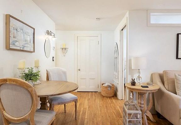 This charming European style one bedroom garden unit is located in a beautiful brick townhouse on historic Monument Square. Sophisticated renovation with spacious living and dining area looking out to the lovely private yard. The kitchen is well appointed with high end finishes includes Calcutta quartz counter tops, Mexican tile floor and Bloomberg and Summit stainless appliances. Nicely renovated tiled bath with shower & tub. Ample storage includes a large walk in closet. Laundry facilities and additional storage shelves in the basement. Enjoy sitting under the shade of a large oak tree in the huge private patio, ideal for dining alfresco and gardening. A rare private parking space included with this special unit.. This a true gem in the most sought after area in the city.