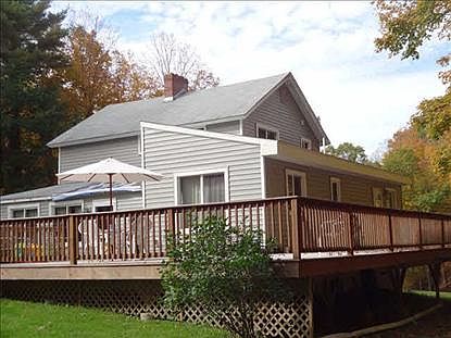 This is a Fannie Mae HomePath property. Older farmhouse has been updated with a contemporary flair. Idyllic setting with 4.8 acres of total privacy at the very end of dead end road includes a babbling brook. Large two car detached garage/barn with a walk up loft and additional storage in the rear. Use the downstairs main floor sitting room, full bath, and bedroom suite for your master or maybe your extended family would love to visit and linger longer in comfort and privacy. Multiple entries from the wrap around decking keeps you connected to the natural beauty surrounding this home. Come visit and fall in love!