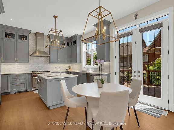 Welcome to this exquisite 4-bedroom, 5-bathroom family home, with 4000 sq feet of total living space and a heated driveway system. This home perfectly combines luxury, space, and modern convenience. Located in a highly sought-after Upper West Side neighborhood, this meticulously upgraded property offers expansive living areas, elegant finishes, and thoughtful design touches throughout. With 10-foot ceilings throughout, the chef-inspired kitchen features honed marble countertops, high-end Wolf and Subzero appliances, custom cabinetry, and a large center island perfect for meal prep and hosting guests. Adjacent to the kitchen, the dining room features a custom wet bar with built-in mini fridge and matching marble countertops, making it the ideal space for entertaining in style. Coffered ceilings in both the family room and dining room with built in Sonos speaker system for entertaining. The private home office features 14-foot ceilings with custom drapery and wall paneling. The four generously sized bedrooms each come with their own en-suite bathroom and custom closets. The luxurious master suite is a private retreat, complete with a spa-like bathroom featuring dual vanities, a soaking tub, a walk-in shower, and a spacious custom walk-in closet. The fully finished basement, with 9-foot ceilings, provides additional living space, including a custom gym room with its own steam shower, a full custom kitchen with stainless steel fridge, dishwasher and range, a large rec area with custom book shelving, and a walkout to the beautifully landscaped backyard. This lower level is perfect for family fun, game days, or hosting guests in style. Outside, the home truly shines with professional landscaping at both the front and back of the property.