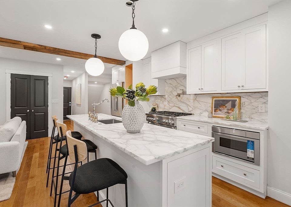 Welcome to the beautifully designed first floor duplex at 27 Mystic Street. Offering a flawless blend of timeless charm and modern luxury that was completely rebuilt from the studs up in 2025. Ideally located on a tree lined street, featuring 3 bedrooms, and 2.5 designer bath's, every inch of this home is brand new. A beautiful primary suite with his and hers closets, a sleek chef's kitchen with Statuario Venturini marble countertops, Thermador appliances, and high end lighting. White oak flooring flows throughout the home, adding warmth and elegance to each room. The lower level includes the third bedroom, a bonus living room/office/gym, a full bath, and Electrolux washer and dryer. Enjoy a private patio and deck while being moments from Charlestown’s best shops, restaurants, and local amenities, this turnkey home offers the ultimate in city living with a neighborhood feel.