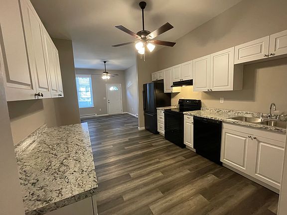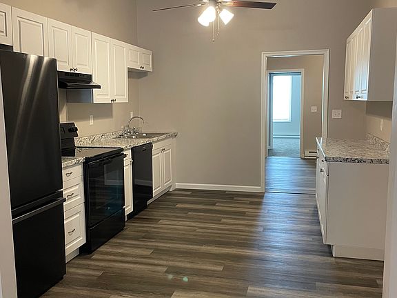 Remodeled first floor apartment! High ceilings, Beautiful brand new vinyl plank flooring and Ceiling fans in each room. New cabinets, fridge, range, dishwasher, windows and bathroom. Laundry hookups in apartment. 2 private entrances. 1st bedroom is a walkthrough to bathroom and 2nd bedroom. Off street parking in the rear. Shared Yard. Close to parks, shopping, restaurants, public transportation and more. Call for your showing... Ready Nov 1st! Tenant pays electric, water, sewer, trash. Owner is responsible for lawn care and snow removal. One Year lease required. Pets allowed with monthly pet fee. No Smoking in apartment!