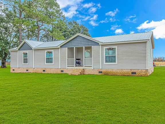 Welcome home to this private piece of property in Tabor City, NC. Featuring a newly built double wide with a large covered porch plus 30 x 40 detached garage with electric; on over an acre of land. The mobile home was built in 2020 and is made by Scott Built, 28 x 64 double wide with brick underlining. The front door has a storm door and opens to a foyer area with a coat closet. To the left is the living room with carpet, ceiling fan and a built-in tv cabinet. Straight ahead is the dining area combined with the kitchen boasting beautiful laminate flooring. The kitchen has an island with plenty of seats, plus black appliances, black sink as well as a window overlooking the back porch area. Off the kitchen is the master bedroom with carpeting and a ceiling fan plus double closets. The bathroom is ensuite with double sinks and a nice standing shower, large soaking tub, plus a toilet all with lvp flooring. The guest bedrooms are on the other side of the home. Both have carpet and a walk in closet. The guest bathroom is located in the hallway, with a tub/ shower combination, sink plus toilet with lvp flooring and a door that goes through to the laundry room. The laundry room is located behind the barn door with a built in workspace, the washer and dryer do NOT convey. Out the back door is a large covered porch 12 x 27 with trex decking, overlooking the private back yard area. This home rests on 1.24 acres and the dark gravel driveway leads right up to the back of the home. There is a very large front yard area that is grassy with some trees for shading. The detached garage is 30 x 40, has electric and can easily fit 5 cars. There are three roll down doors around the outside. This home is serviced by Columbus county water, septic system, Brunswick electric and spectrum internet + cable. All of this is located in the southernmost town in Columbus county, Tabor City. The North Carolina Yam Festival is the highlight of this small town. Or check out Lake Tabor, a two acre lake where boating events are often held. This area boasts several restaurants and shops plus parks and athletic fields. There are over 100 golf courses within 40 miles of the town, a local campground that has a small waterpark, a train depot and a fourth of July festival. North Myrtle Beach is only 30 minutes down the road and the North Carolina beaches are even closer. You don’t want to miss the opportunity to purchase this property at such a great price!