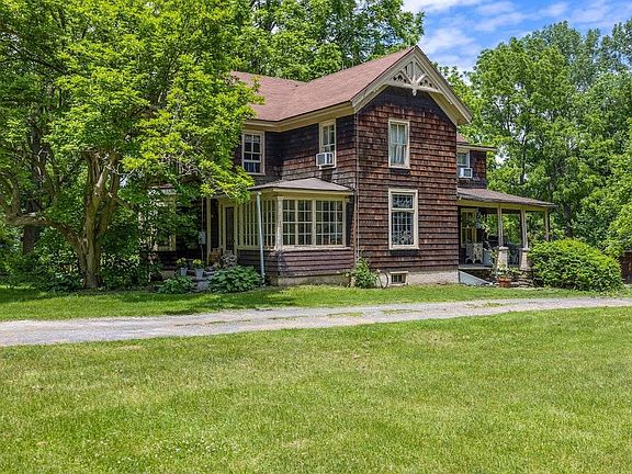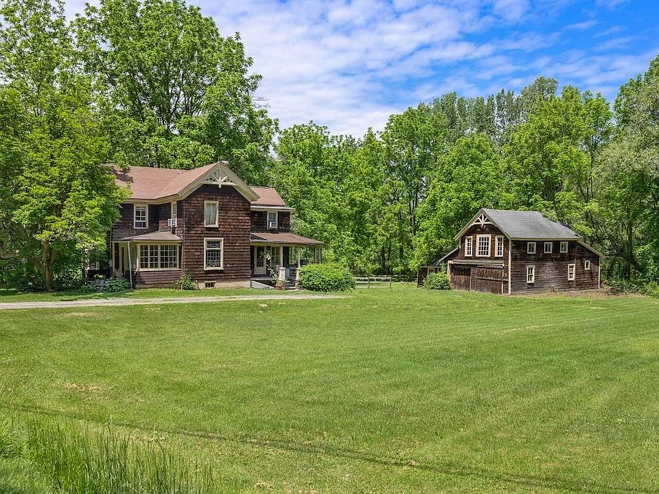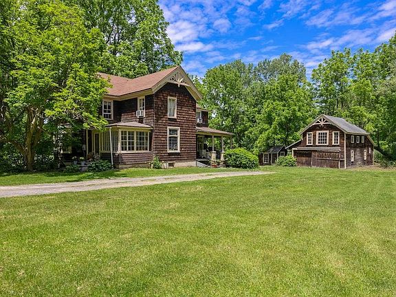 Charming 1890's Victorian farmhouse with two-story barn (w/horse fencing) on 5+/- acres with the Taconic State Park/Bash Bish Falls (i.e. walking distance to hiking trails, swimming & thousands of acres of protected land). Just steps away. Three bedroom home, two full baths, custom kitchen, hard wood floors throughout, front sunporch, rocking-chair back porch overlooking a beautiful barn, field of wildflowers, your own private pond ??? & peacefulness. Living room was originally the master bedroom ensuite, which could easily be a first floor MBR again. Find inspiration and let 27 North Mountain Rd., Copake Falls be your happy place & let good times and happiness begin. Needs some work but well worth it. Property borders Harlem Valley Rail Trail.