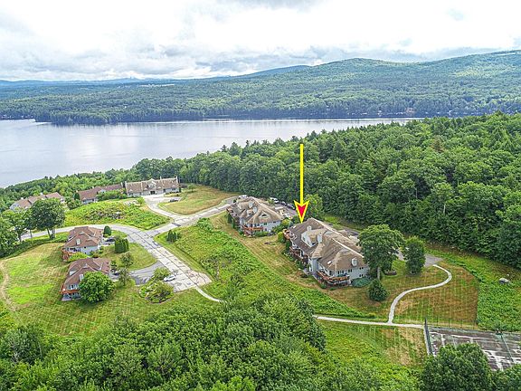Perched on the highest level of North Peak Village, this spacious 3 bedroom/2.5 bath end unit is wider than most units. The western views will take your breath away when you see your first sunset from the expansive decks. Entertaining will be easy with activities for your guests being minutes from skiing and the Sunapee State Beach. Main level boasts a large kitchen, spacious dining/living room with propane fireplace and high ceilings. Primary bedroom suite looks out to your views and has a large walk-in closet. Lower level has 2 more bedrooms, full bath, laundry room and large family room with another propane fireplace and sliders opening to a covered deck. If this isn't enough,this stunning unit comes furnished, so move right in after closing. (Buy-In fee is 1% of sales price.) DELAYED SHOWINGS UNTIL OPEN HOUSE ON SAT. AUG. 31. 10 TO NOON, AND SUN. SEPT.1ST , 10 TO NOON. ( click on unbranded tour for 3D tour of condo)