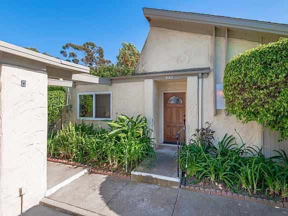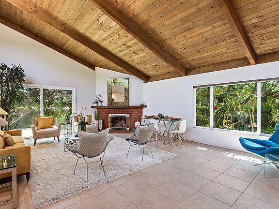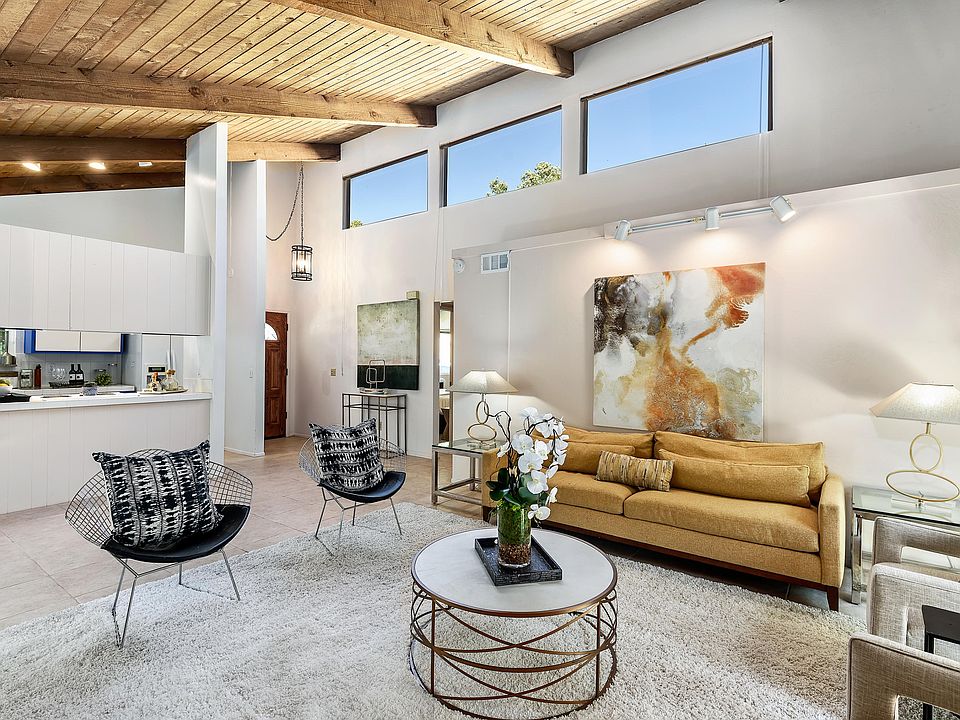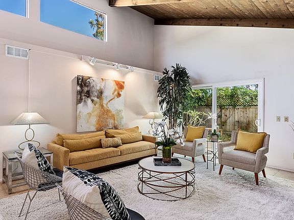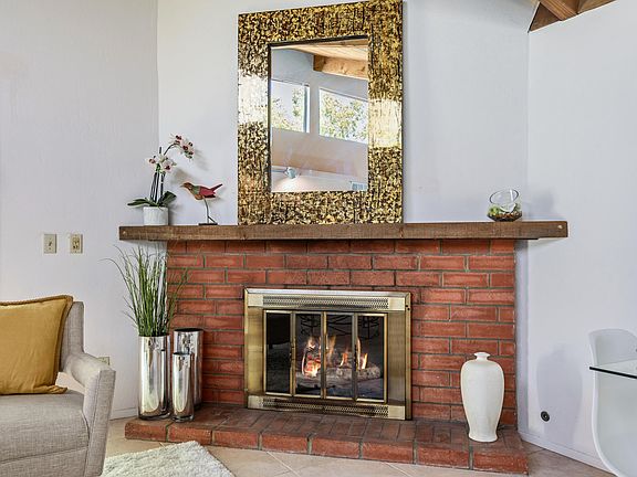 PEACEFUL, PRIVATE, & CONVENIENT! This single-level 2BD/1BA end unit in rarely available San Antonio Village offers an open floor plan consisting of 1,221 sq ft and includes such practical amenities as in-unit laundry, two parking spaces with storage unit (carport and uncovered), and a private backyard patio area with refreshed mature landscaping. A corner fireplace, soaring vaulted ceilings, and travertine-like floors give depth and charm to the comfortable space.