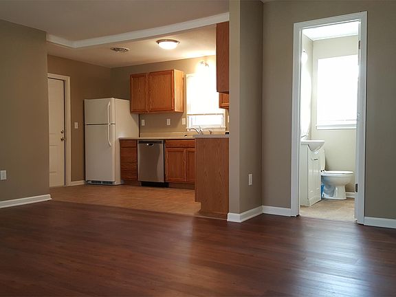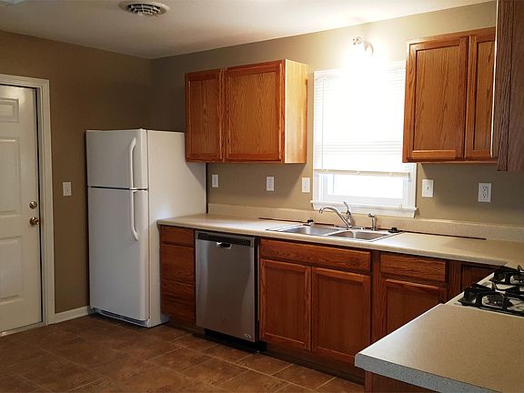 2 Bedroom/1 Bath house tucked away on a shared private drive. Features an open floor plan with porcelin tile in entry, kitchen, bathroom and laundry area. Wood look plank flooring in living room and both bedrooms. Kitchen has new cabinets, counter tops and applicances. Laundry area has new washer & dryer plus the house has a new heating & air conditioning unit. 1 car attached garage with walkout to backyard and a covered patio area. Perfect for grilling and relaxing while listening to the creek behind the house. Excellent location with easy access to 13 Hwy, 50 Hwy, shopping & schools. All utilites & yard care are the responsibility of the tenant. Credit/Background check and 12 month lease required. $ 850..00 deposit and if pet $500 pet deposit per pet with approval - limit 2 and 30 lb weight limit.