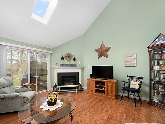 Rare Opportunity in Olde Canal Way – 55+ CommunityWelcome to this beautifully maintained and rarely available unit in the sought-after Olde Canal Way Over-55 community. This spacious condo features a two-car garage and a bright, open-concept living space. The living room offers soaring cathedral ceilings, a cozy gas fireplace, and abundant natural light from the sliding doors that lead to a private deck—perfect for relaxing or entertaining.The kitchen provides ample cabinet space and seamlessly flows into the dining area, creating a comfortable and functional layout. Also on the main level is a convenient half bath with in-unit washer and dryer included. The welcoming foyer features double closets and a wide staircase leading to the second floor.Upstairs, you’ll find a generously sized primary bedroom with vaulted ceilings, a palladium window, ceiling fan, and walk-in closet. The Hollywood-style full bath includes a tiled floor and an extra-wide