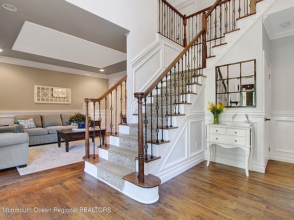 Backing up to the 12th hole of Eagle Oaks Golf Course in this exclusive Shore Oaks community has been exquisitely updated for grand entertaining. From weddings & Sweet 16's in the beautifully manicured backyard to holiday parties with the chef-inspired gourmet kitchen equipped with top of the line 'smart' appliances this home has everything a large or growing family can wish for. Built w/ friends & family in mind its interior flow is highlighted by the outstanding custom millwork throughout. Enter into a 2-story foyer w/ center hall stairway separating the formal living room to your left and your home office to the right. Pass through the LR into the formal dining room w/ coffered ceilings and the finest woodwork you will find in a house at this price. (more) ceilings and the finest woodwork you will find in a house at this price. On through the eat-in kitchen w/ quartz counters & center island, Thermador & Bosch appliances into the grand family room with vaulted cathedral ceilings, wood-burning fireplace and windows w/ Plantation shutters. Upstairs you find the home's master en-suite w/ a walk-in closet & marble bathroom with a 4x6 shower, plus three additional bedrooms and full bath. On the lower level you will find even more millwork w/ a hand-made bar, 2 wine fridges & wine closet. Another feature is a home theater system w/ a built in projector & screen for movies & sporting events! It would be hard to find a better deal tucked away on a cul-de-sac in this Shore Oaks community.