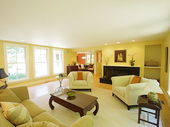 One of the most distinctive and elegant houses in Northampton. On 1.6 acres near Child's Park, this captivating 1 story California-style contemporary has 5000 s.f.--including a recent 1250 s.f. addition. It offers gracious and light-filled open spaces, blended seamlessly with the private living areas with 5/6 bedrooms, 3 full and 2 half baths. The entry guides you into the living room, illuminated by oversized windows that look out on a serene, professionally-landscaped garden on one side and a stone patio on the other. The spacious chef's kitchen has a large island, abundant lighting, granite counters and custom cabinets. One wing of the house has 3 bedrooms, full bath and den/media space. The owner's wing includes an office, bedroom with built-ins, walk-in closet with skylight and en suite bath. Through the library, you enter the final wing with a suite of rooms including a large den, laundry room and half bath, serene multi-purpose space and large bedroom with bath. Minutes to town!