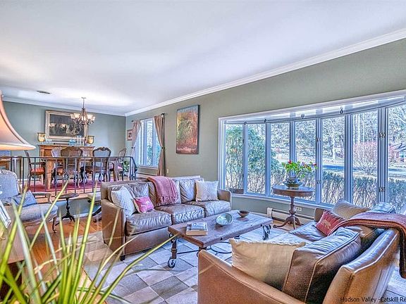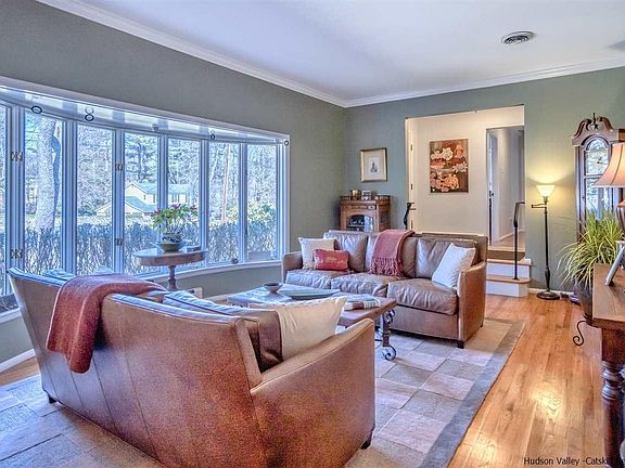 Lovely Brick Ranch! Special 2500 +/- square foot Brick Ranch has it all! Beautiful location for walking or biking, minutes to Uptown and all Kingston has to offer! Minutes to the Rail Trail, time to get back to nature. This 4 BR/ 3 Full bath Ranch has welcoming foyer, gorgeous hardwood flooring throughout. Sunken living room, spacious dining room, eat in kitchen, laundry room, family room with stone wood burning fireplace. Family room has sliders out to a magnificent heated sunroom, seller has enjoyed many nights listening to the sounds of summer and watching the snow fall, super cozy! The lush backyard is fenced, has a patio and it is big enough to play baseball in, or just gaze at the stars by the fire pit! Primary BR, en-suite, walk in closet and walk out to private decking with hot tub! Ahhhh, this is just what the Dr. ordered! 2 car attached garage, full basement, B-Dry system, roof is 10, hot tub and deck are 8 Boiler is 10, Central A/C is 5 or 6, new oil tank, electric garage door opener, recessed lighting, just a gem! Make your appointment today to see 27 Norma Court! Easy to show!