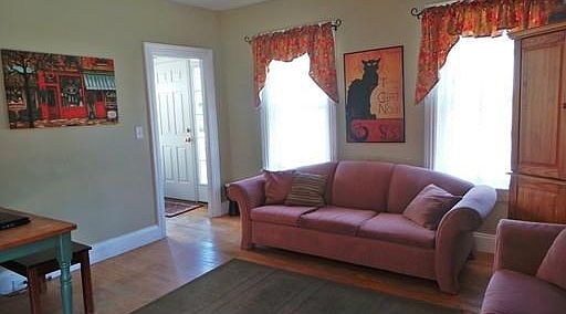 Great starter home for commuters! Home features newer 97% efficiency rated GAS heating system, YOUNG vinyl windows, newer siding with added insulation to exterior walls, and NEWER architectural shingled roof. In addition, repainted interior walls! First floor features hardwood floors throughout. Front living room with beautiful brick wall overlooks the dining room with large windows for natural light. Sunlight overflows the heated sunroom, which is accessed by both dining room and kitchen. Kitchen has deck off back for easy grilling and entertaining. Rounding out the first floor is a generously sized bedroom with a cute 1/2 bath. 2nd floor features new carpet. Full bath features tub/shower and a large walk in closet for storage and possible expansion of bath or bring up the laundry from the basement. Home has a detached 2 car garage and a pear-tree lined oversized back yard. Home is just outside of a great neighborhood, great for walking and bike riding