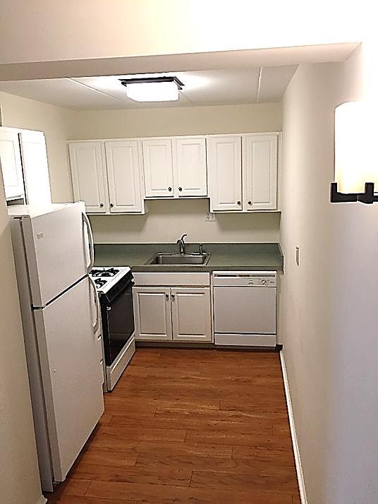 Light & Bright! Totally updated studio apartment with sleeping / office alcove. The unit has new windows, an updated kitchen with dishwasher, new bathroom and beautiful wood throughout. Heat, hot water and cooking gas included. Coin-op washer & dryer on each floor. Fitness room off lobby. Common areas have been recently remodeled and updated. Super on site. Controlled access building. Very desirable Springdale location. Walk to train, shopping, theater, restaurants, Stamford Twin Rinks. Reserved parking available for an additional monthly fee. One time $200 move/out fee. No dogs or cats. Heat, hot water and cooking gas included in rent. Minimum credit score of 650 required. Credit and background check required. Background checks are done with Transunion SmartMove, a one-time non-refundable fee of $40.00