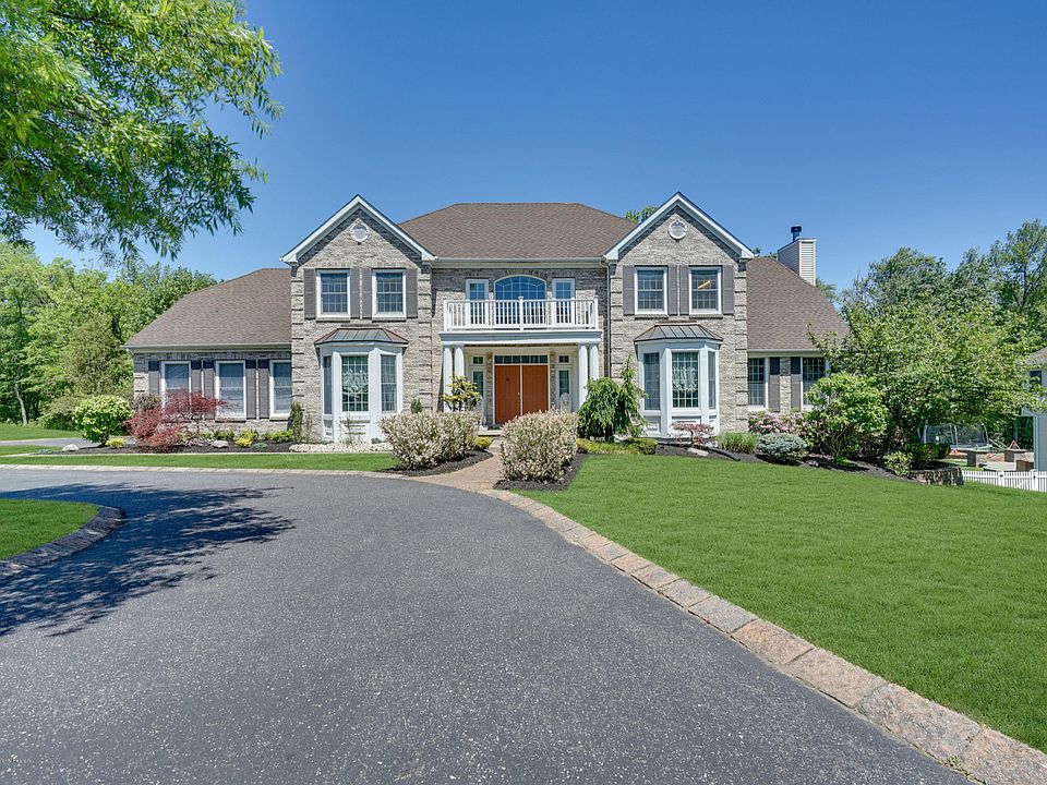 Nestled on 1/2 acre in the premier Wayside section of Ocean Twp, this 5 BR, 4.5 Bath Colonial blends relaxed sophistication with 5,100+ sq ft of dramatic architecture and comfortable living. Spectacular split curved staircase in the impressive foyer will grace your group photos for years to come. Got Guests? No problem: 1st floor en suite bedroom. Like Billiards? Air hockey? Ping-pong? The Finished Basement can accommodate them easily + your poker table & skee-ball with room left over for a home gym & media room. The heart of the home -the Kitchen- is the largest room & features 7' granite center island, walk-in pantry, breakfast nook, butler's pantry & sliders to a 2-tier deck & patio overlooking woods. Very private. Sunken family w/HW floor, tray ceiling &FP. Sumptuous Master Suite. MORE