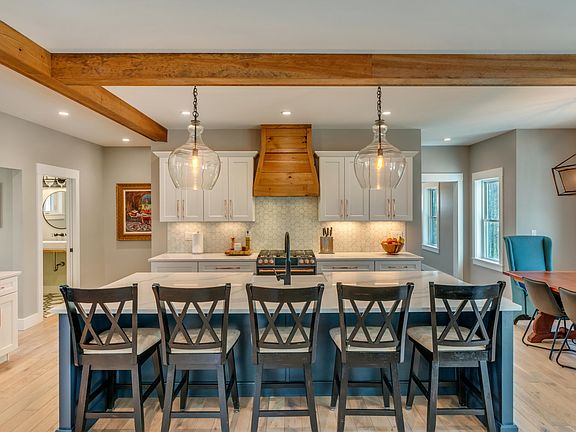 NEW PRICE on this exceptional modern farmhouse! Tucked at the end of a quiet cul-de-sac, this custom-built home effortlessly blends contemporary luxury with refined rustic style. White oak floors, exposed beams, and abundant natural light welcome you into a warm, open-concept living space centered around a cozy propane fireplace with direct access to a spacious back deck - perfect for entertaining or peaceful evenings at home.