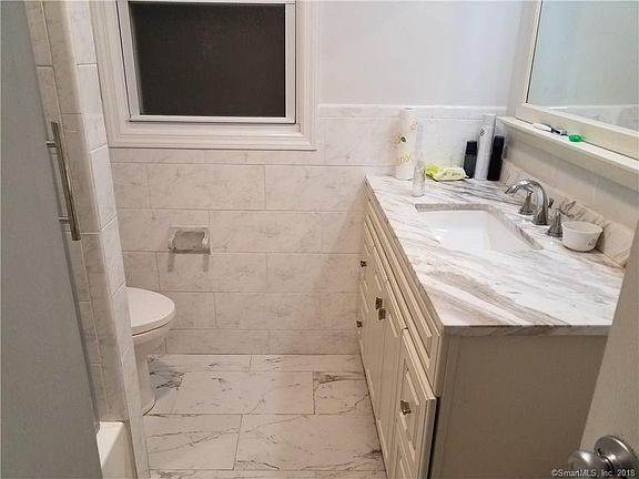 Comfortable 3 bedroom first floor apartment -Spacious with separate dining room, living room, and E.I. Kitchen. Carefully maintained and improved from freshly painted, refinished beautiful floors, new bathroom, laundry inside unit and much more. Owner will provide 5 window unit A/Cs and Washer & Dryer (working but as is condition). Included Two off street parking and use of lovely patio (shared with 2nd flr. tenant. Tenant responsible for credit check, references, sec.dep. and for all utilities except Sewer and cold Water. All of this located on a quiet short cul-de-sac. Conveniently located to bus line, Train Station, Shops, Restaurants, and Merritt Pkwy