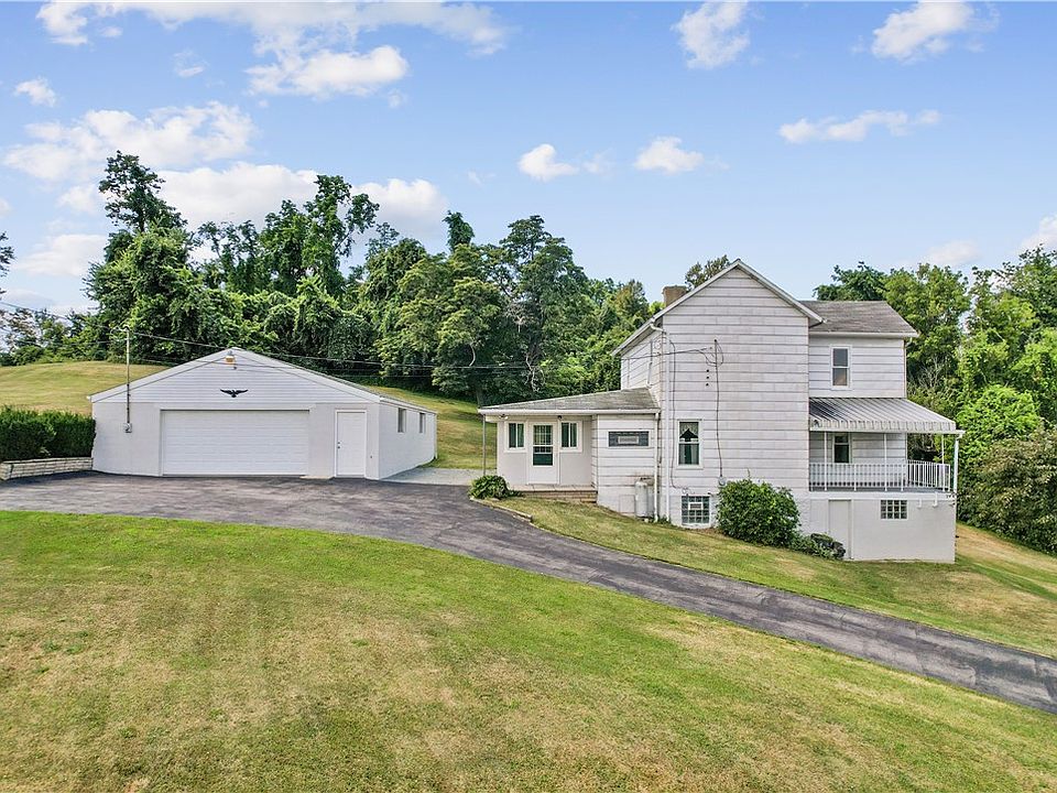 Welcome to 27 Old 51 Rd! This 4 bedroom, 1 full bath home is situated on approx 9+ acres in Frazier School District! Master bedroom on main level with two closets. Additional den on main level provides extra room for entertaining! Eat-in kitchen with panty! Covered front porch on front of home with a view! Paved driveway provides plenty of extra parking! 6 car detached block garage is a MUST SEE! Garage has electric, heat & water! Home has easy access to Route 51! Seller is providing HSA home warranty at closing for new buyer!