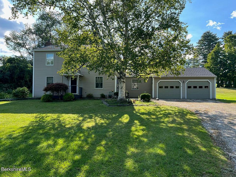 Beautifully situated at the end of the cup-de-sac, this lovely Colonial has a private back yard and pretty views of October Mt. Large formal Living Room w/wood burning fireplace, formal dining, kitchen with either an eating area or den with sliders to the deck and a first floor Primary Suite. 2nd Floor has an additional Primary Suite pus 2 additional bedrooms and full bath. Beautiful Oak floors in LR, DR, Kitchen & Eating Area, carpet on the 2nd floor plus Primary Suite on first floor. First Floor laundry & 1/2 BA! Many updates including 30 year roof, siding and new Anderson windows in 2008, Natural Gas Boiler and Hot water in June of 2022. This is a home that's been lovingly maintained and offers privacy , proximity to the High School and beautiful mountain views!
