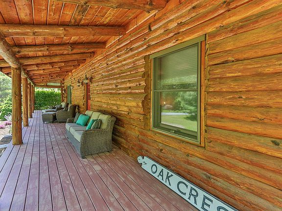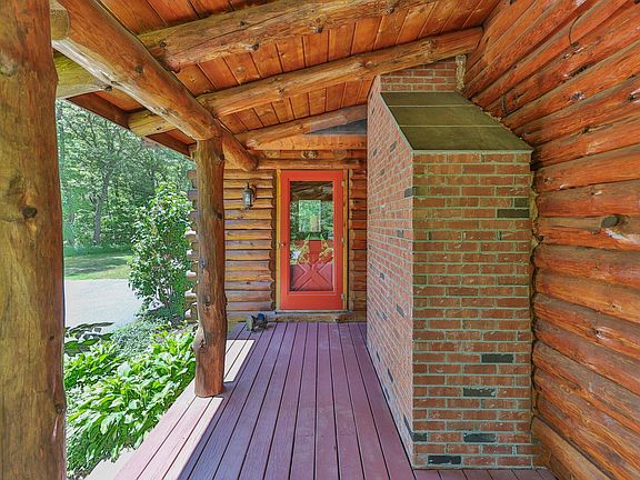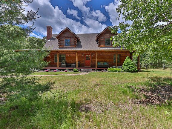 Peaceful, private and quiet home set on 2 acres of beautiful land abutting another 80 acres of conservation land. This strikingly handsome cedar log home is just over 20 years old but it feels like it has been here forever with its timeless design and the solid presence of red pine log walls. Enter the open plan great room with a two-story cathedral ceiling and a handsome fieldstone fireplace. The yellow pine floors flow to the kitchen with granite counters and 2 year old quality stainless-steel appliances. 1st floor primary BR, with en-suite bath with whirlpool tub, shower and WIC. 1st floor half-bath with 2 year old LG wash tower laundry. Open wide stairway ascends to a 2nd floor loft family room and two good sized bedrooms with another full bath. There is an expansive farmers porch on the front and a sunny 30 x 16 deck in back. A sun-splashed mud room off the driveway will welcome you home every day. For bikes, beach gear and adult toys there is a free-standing 24 x 16 shed with electricity. Plus a huge full basement, FHA oil heat and central AC. Listing information deemed reliable but should be verified by Buyers and Buyer's advisors