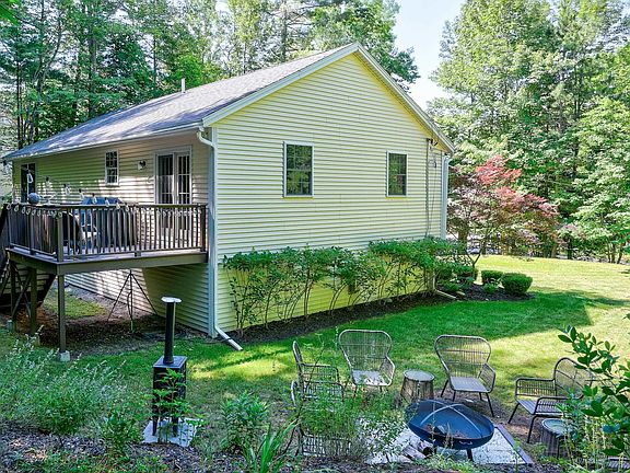 Welcome home to Old Goshen! This meticulously maintained, raised ranch home is just one mile from the public beach and boat launch at Conway Lake. Gorgeous landscaping greets you and your guests with a peaceful, lovely entryway. Inside, the home's main level is open and bright with hardwood floors, a warm wood beam, elevated cathedral ceilings and a large picture window in the living room, and doors leading to the back deck from the kitchen. The kitchen has beautiful granite countertops, stainless appliances, and a large eat-in peninsula which is perfect for casual meals and entertaining. Three bedrooms, including the primary with a ¾ ensuite, plus a shared full bathroom, are located on the main level as well, all of which have good ceiling height and plenty of space. Downstairs, the beautifully finished lower level makes for a great second living space with a cozy gas log fireplace, a nice laundry room with convenient sink and cabinet storage, a large closet great for a mudroom area, as well as access to the oversized garage. On-demand heat and hot water, and mini-splits ensure year-round comfort. Outside, the grassy yard is spacious and level for fun and games with a beautiful firepit area and mature landscaping. Ideally located just 2 minutes to the Conway Lake beach, less than 10 to downtown Fryeburg and the Fairgrounds, and 15 to the shopping and restaurants of North Conway.