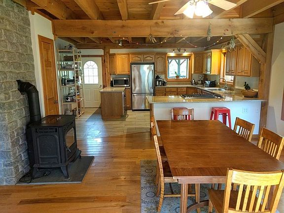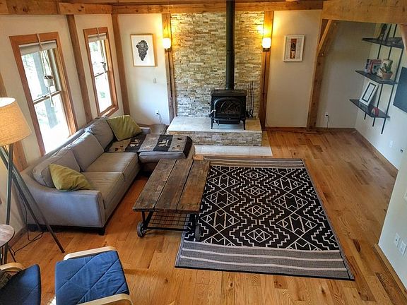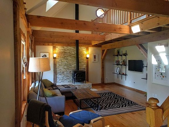 Come home to this artfully designed 2003 post and beam, in a serene setting convenient to area colleges/university and other amenities. Easily access hiking trails and enjoy the large yard with chicken coop, potting shed, and newly fenced-in area. Work from home or generate rental income from the 1600 sq ft studio outbuilding, which features radiant heated floors, and a new mini-split A/C. Other highlights of the property include 2 pellet stoves and a Jøtul wood stove, wiring for backup generator, new dishwasher, new roof (2012), and other improvements throughout. Walkout basement features a bonus family room and newly-added half bath, which has space for a shower as well.