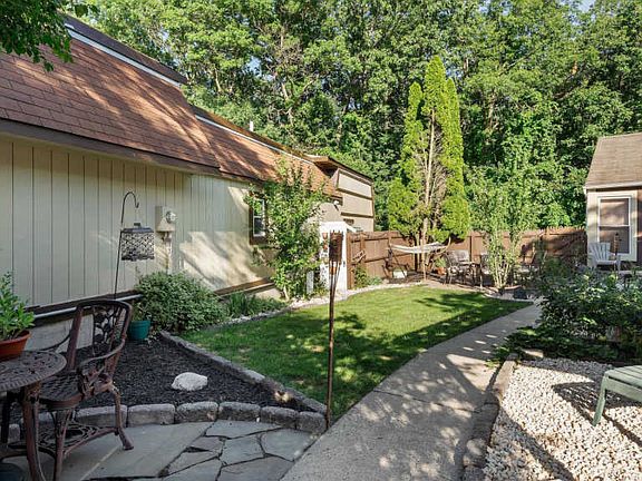 Enter the private courtyard to this well maintained, detached home. It offers 3 bedrooms and two full baths. The living areas, with high ceilings include family room with fireplace, huge living and dining, and a well working kitchen with breakfast bar. Large master bedroom with sitting area, walk in closet and its own bath. The spacious 2nd and 3rd bedrooms share the second full bath. The sliders open out to the private rear property, backing to a wooded buffer. A rare combination in condo living.