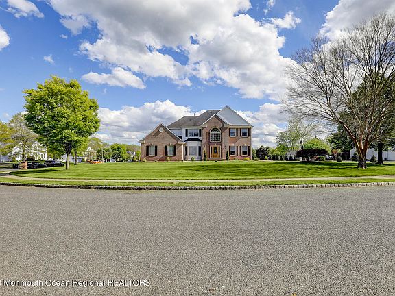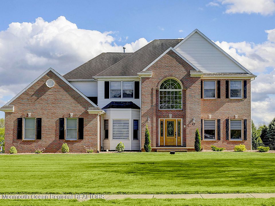 Absolutely STUNNING 3,200+ Square Foot 5 Bedroom, Brick Front Center Hall Colonial on a Spacious .75 Acre Lot w/ Full Finished Basement in one of West Freehold's Most Sought After Locations, the Prestigious Huntington Knolls! This Gorgeous Home Features a Brand New Front Door, Entering to the Grand 2-Story Foyer w/ Custom Designed Staircase & New Wrought Iron Rails. Gleaming Hardwood Flooring Throughout, along with Decorative Moldings & Recessed Lighting. The Perfect Open Floor Plan for Entertaining w/ Spacious Eat in Kitchen Featuring New Stainless Steel Appliances, Granite Counters, and Tile Backsplash + Butlers Pantry! Relax in the Sunken Family Room w/ Cozy Gas Fireplace! Convenient 1st Floor Bedroom + Full Bathroom Perfect for In Law Suite, Office or Playroom! 4 Spacious Bedrooms Upstairs with Master Offering Vaulted Ceilings, Full Bathroom + Walk in Closet + Tastefully Designed, Brand New Carpeting In Upstairs Hallway. Full Finished Basement Adding Tons of Extra Living & Storage Space! Newer HVAC, Water Heater along with Underground Sprinklers, Central Vac and Top Rated Freehold Schools, Make This Home the Perfect Choice!