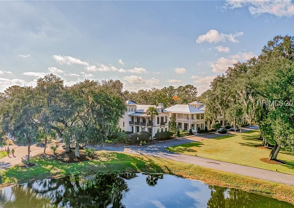 Designed to perfection, stunning inverted floor plan with panoramic views. Location! ...Walk to community pool, dock, & one of the most beautiful waterfront streets in Habersham on the other end of your extended front yard - the park. 4 full bedrooms including FROG, optional 5th bedroom off kitchen or use as an office, study, 2nd den. Open floor plan, watch tower with impact windows, HUGE OPEN KITCHEN with large pantry, master suite with oversized bathroom & closet, & 15' ceilings on 2nd floor. Master Suite opens into courtyard. Full kitchenette & en suite bath in FROG over 2-car garage. Gas fireplace framed in classic Tabby in Great Room.