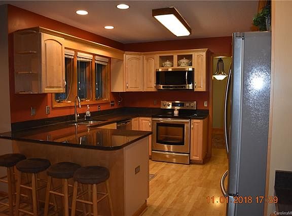 Located adjacent to Hominy Valley Rec Park, this maintenance free home is perfect for a large family. Walk to schools, Tennis, trails, football games, pool and park. NO HOA Dues as roads are publicly maintained! Built in 1998, this home has 4 bedrooms and 3.5 baths. Granite counters and stainless appliances were installed 7 yrs ago. Large living room has gas logs, and floor to ceiling windows. Wrap around covered porch, screened rear porch and a deck. Large patio also doubles as your own 1/2 basketball court. 4 bedrooms all on upper level to keep the kids close. Main level has a powder room for the guests and small office with access to other bath. Come add your own touches and updates to this great home.