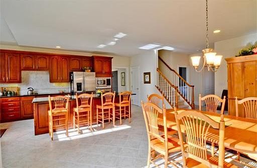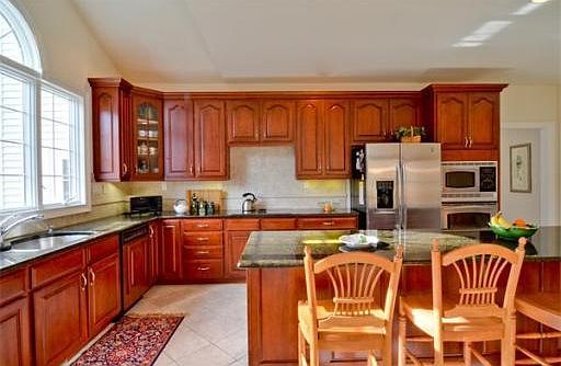 Spectacular home w/ an enormous sunny heart, i.e. wide open kitchen w/ room for everyone! Great house for entertaining - granite center island open to spacious eat-in area, large warm family room w/ fireplace and HUGE great room off kitchen. Formal dining room, living room, w/ hardwood. First floor study/office w/ built-ins & hardwoods. Lavish master suite with sparkling master bath. Three additional large bedrooms, each with its own full bath. This home has it ALL - 2 stairways, 4 full baths, 3-car garage, and great commuter location--good access to commuter train. Basement roughed for bath. Future expansion possible. Exercise room in LL.Extraordinary sunset views! Private wooded backyard.