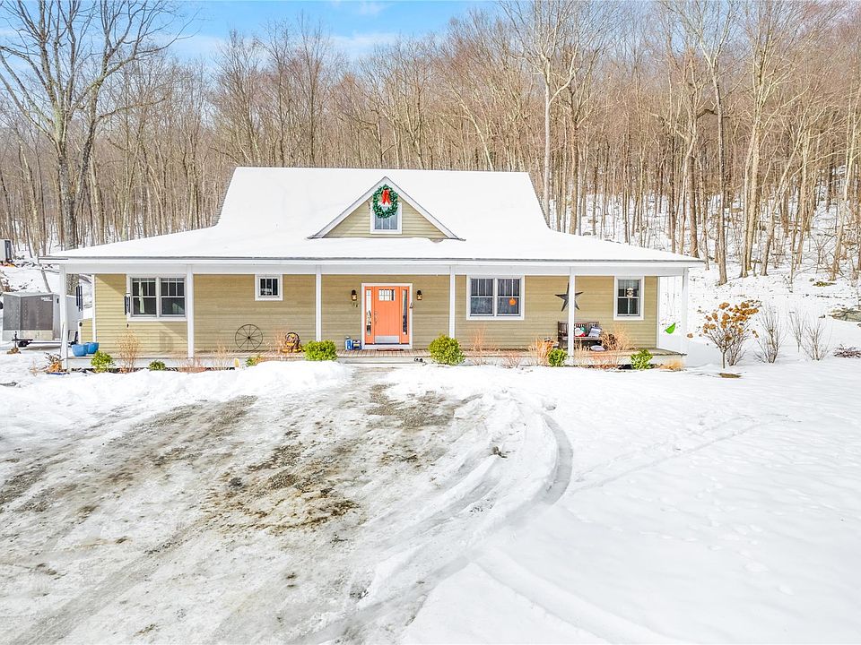 This beautiful ranch-style, modern farmhouse built in 2020 offers the luxury of new construction without the wait! Situated on almost 5 acres, this property offers peace and privacy. The open-concept layout with vaulted ceilings provides a spacious and airy feel, with tons of natural light flooding the space. Enjoy the modern kitchen with stainless steel appliances, dinning area with doors leading to the screened-in back porch, ideal for entertaining, and living room with electric fireplace. Home features primary bedroom with luxurious ensuite with a walk-in shower, two more generously sized bedrooms and a full bath. The custom fire pit in the backyard is perfect for relaxing and enjoying those summer nights! Excellent location, close to Route 84, shopping, restaurants and more!