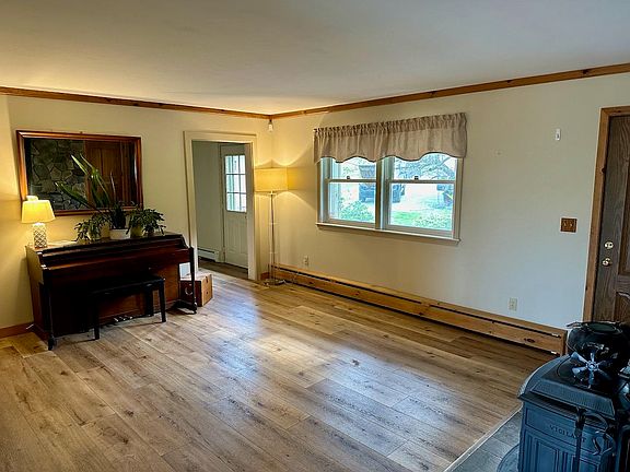 MOTIVATED SELLERS. This turn key 4 bedroom 2.5 bath home on 3.27 acres offers westerly views overlooking the foothills of the Green Mountains. The main floor features a family room, dining room, and kitchen equipped with stainless steel appliances with plenty of storage in the cabinets and built-in pantry. The family and dining rooms allow access to a large back deck with views of the mountains and stunning sunsets. The living room offers comfort and warmth, centered around the Vermont Castings Wood Stove situated on a stone hearth. The main floor also features 3 bedrooms, 1 bathroom, a large laundry room, and mudroom with half bath. The walkout basement shares the views and afternoon sunlight offering a 4th bedroom with murphy bed, full bathroom, and second laundry room, utility room, kitchen, and living space. This space can be used as an income producing accessory suite or primary suite. Recent improvements include connection of Fiber-Optic internet, new UV water filtration system, and renovation and improvements to the accessory suite. Other property features include a two-car garage offering plenty of space, gorgeous perennial gardens, well maintained yard, rolling pasture, and a U-Pick apple orchard. Nestled on a quiet country lane, yet near everything the villages of Cambridge and Jeffersonville have to offer. Sellers will consider all offers.