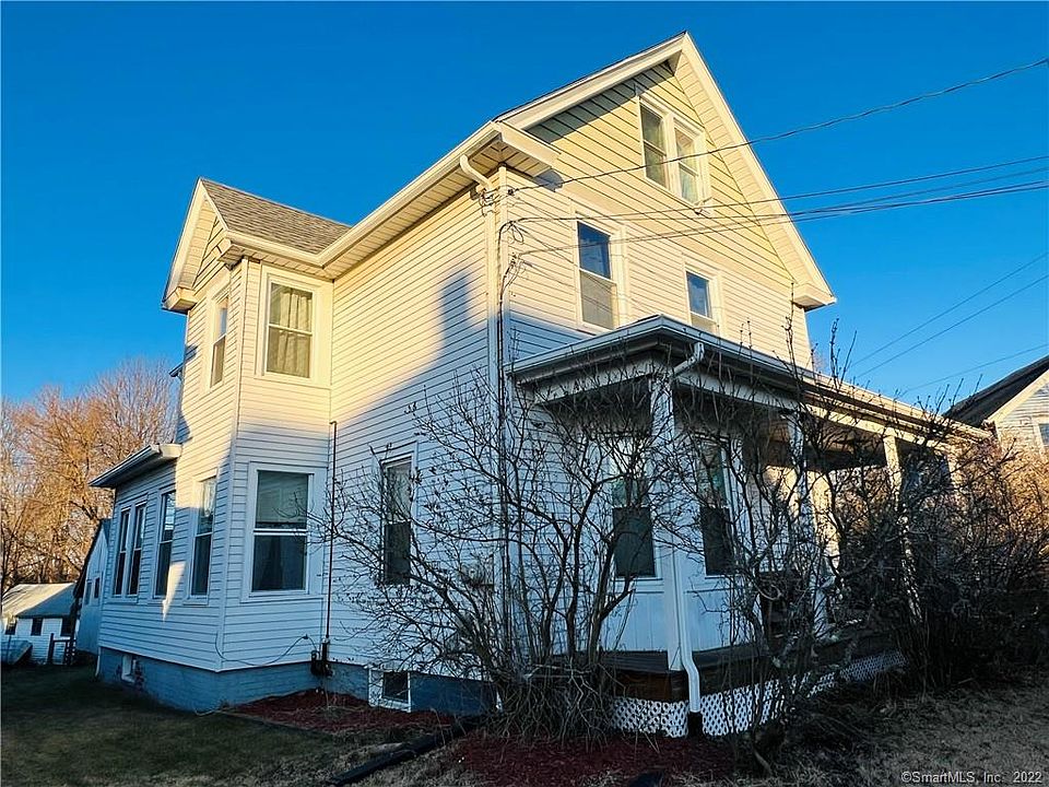 HANDYMAN SPECIAL 2 FAMILY that could possibly be used as a 1 FAMILY! (currently being used as a single family) PAVED driveway, 3 OUTBUILDINGS could be 3 or 4 garages and a wrap around FARMERS PORCH. 1 st floor has large eat in kitchen, bathroom, Large living room, dining room and room with the PELLET STOVE is actually a bedroom. Upstairs there is another eat in kitchen are w/ PANTRY, bathroom, bedroom and living room (being used as a bedroom) WALK UP ATTIC partially finished (being used as a bedroom). MOST REPLACEMENT WINDOWS, NEWER OIL TANK & UPDATED electrical. SOLD AS IS- *****CASH-CONVENTIONAL or 203 k ONLY*** 1 boiler-1 oil tank-1 pellet stove, separate electrical and PLENTY OF PARKING! ***OCCUPIED***