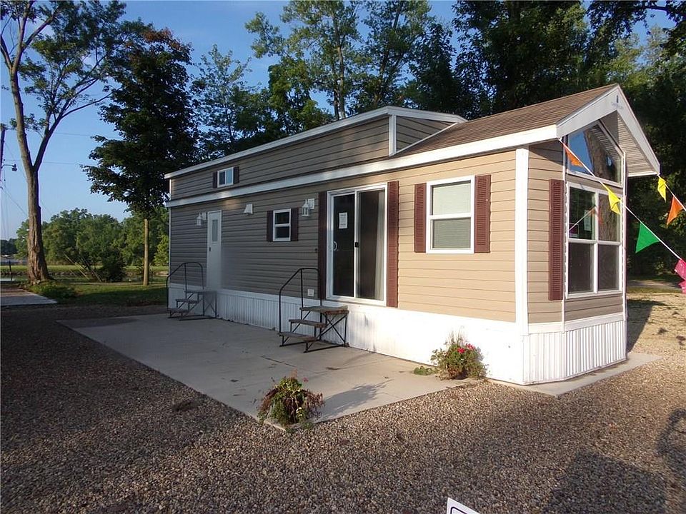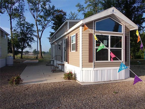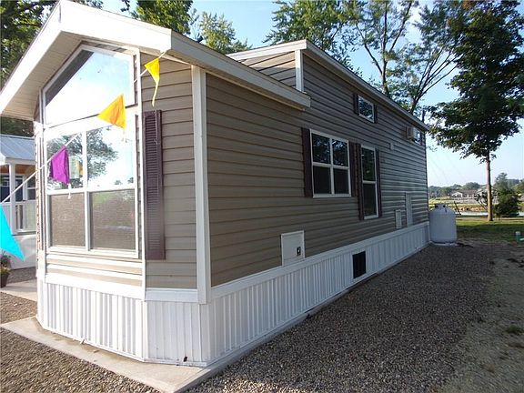 2018 Bayview with Tan Vinyl siding with Maroon Shutters and white trim. Park model comes with shingled roof, vinyl siding, skirting, fully furnished! Parking for 2 cars. Buyer is to pay County Sewer, water, Midwest Electric and propane if used. Model sets on a concrete slab. Lot Lease $3,000 per year includes 1 side of a Dock, street lighting, and road maintenance. Storage garage being built optional 10x16 units @ $500 per year. Buyer must have a $100,000 Liability Insurance coverage. Park owner will perform a $40 background check at the cost of the Buyer. MSRP price is $51,549 plus $2,500 prep. SALES PRICE IS $47,731!