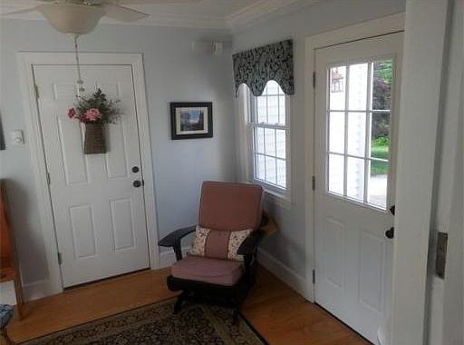 Adorable and compelling! This well maintained and updated ranch is right out of pages of a magazine. Small and mighty. It includes hardwood floors and a sunroom with slider to a huge 46' rear deck overlooking a lush and expansive back yard.Wired for speakers in Exterior, sunroom and LR. Abuts woods with a beautifully landscaped lot. One car garage with auto opener. Full unfinished basement with walkout to yard. Many details that make this house a great opportunity for first time buyers or down-sizers Hurry!!!!!.