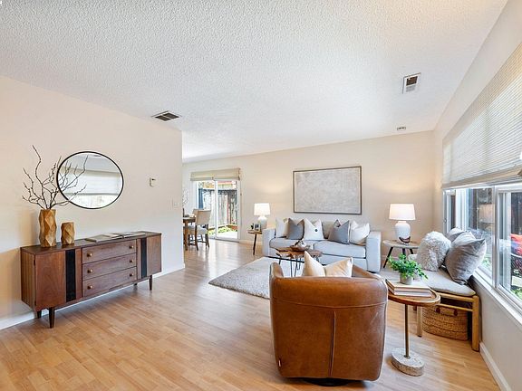 Townhouse style home with gorgeous remodeled kitchen, dining area, living room, downstairs half bath, in-unit washer and dryer, 1 car detached garage and 1 unconvered parking space. Upstairs are 2 large light-filled bedrooms with upgraded carpet and lots of closet space and an upgraded full bathroom with skylight for nice natural light. Enjoy lounging or entertaining in the nicely landscaped yard with pavers, decorative rock and greenery. Visit nearby Meek Estate historic home and park or Cherry Land Community Center. Great central location just minutes to local restaurants, shopping, entertainment and easy access to all major highways/freeways and BART. Low monthly HOA fee.