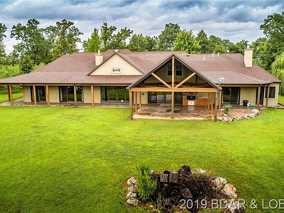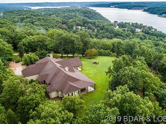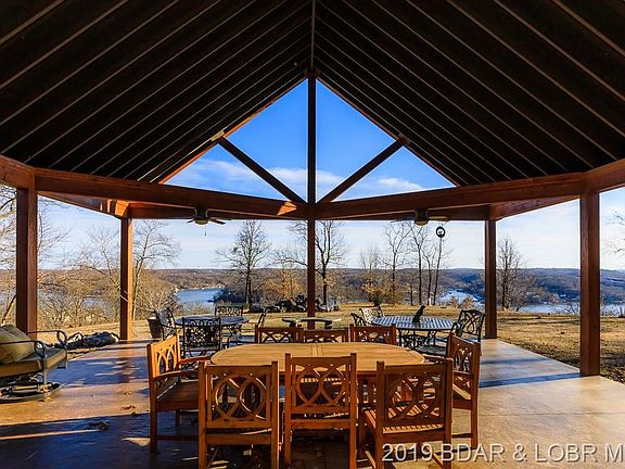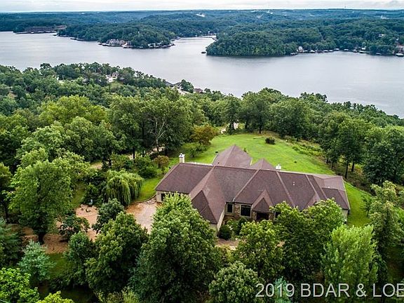 Nestled on a hilltop with 3.5 acres, overlooking miles of the Lake of the Ozarks, sits this expansive gated estate with over 4500 SQFT of open main level living with the Master Suite, 2 En Suites, living room, formal dining, the Chef's kitchen, wet bar and the den, which could also be used as another suite on the main level. The Chef's kitchen features a six burner gas stove w/ pot filler, surrounded by a slate wall w/ a custom mosaic tile accent, butcher block counter tops, granite island with a milled out granite sink and stainless steel appliances. Abundance of space for food/storage with the custom cabinets and butler pantry. The master suite will blow you away with it's private exercise room/office, massive walk in closet and double entry walk in shower. With almost 2000 SQFT of stamped and stained covered concrete patio space with an outdoor kitchen, you will really enjoy the sunsets over the Lake; house faces North to South. Four car garage, 16x40 boat slip and 2 PWC slips inc.