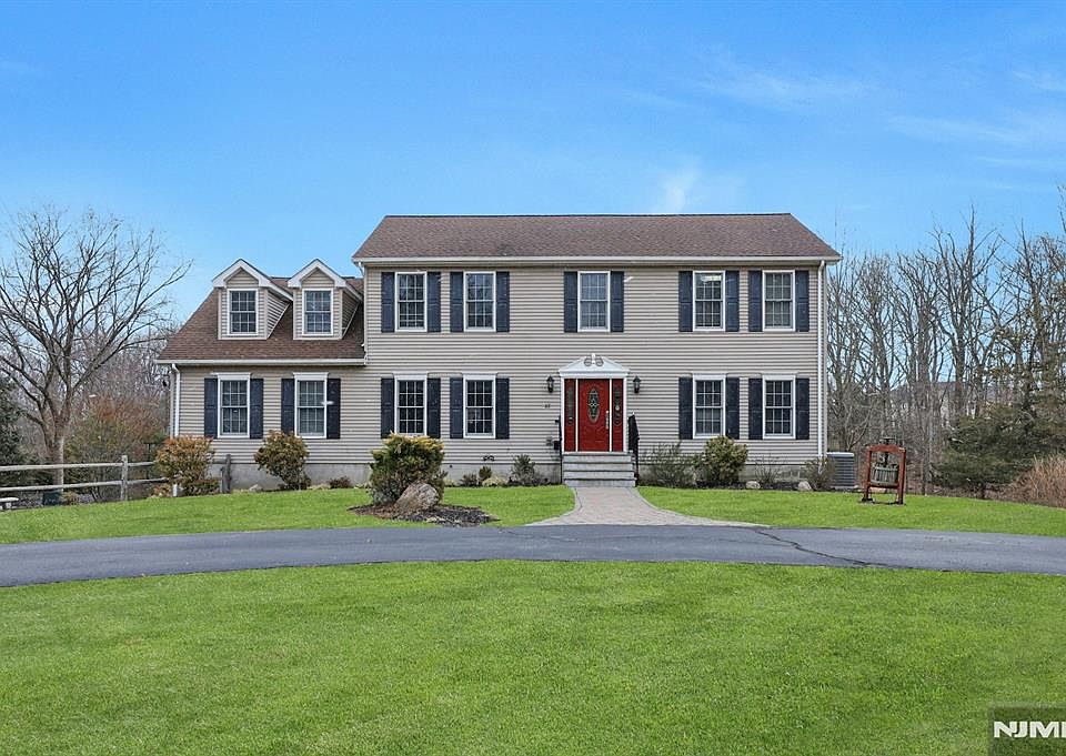 Pull up to the circular driveway and fall in love with this stately colonial that feels like you just arrived in New England. Sitting on a quiet and private road, this home is on over an acre surrounded by woods. Enjoy 4 spacious bedrooms, 2.5 baths that have been recently renovated, spacious eat in kitchen with granite counters, stainless steel appliances, and breakfast bar. Entertain in the front to back family room with pellet stove to keep warm on winter nights. Laundry room is conveniently located off the kitchen along with a powder room. You'll love the bonus room off the primary bedroom that could be used as a closet, crafting space, meditation room, etc. The basement is unfinished with high ceilings and easy to finish. The 2 tier deck is newer as well as the above ground saltwater pool. Hot tub rounds out the outdoor space. Enjoy top rated schools, proximity to downtown Ramsey, convenient NYC transportation, hiking at Ramapo Reservation, skiing at Campgaw, and so much more.