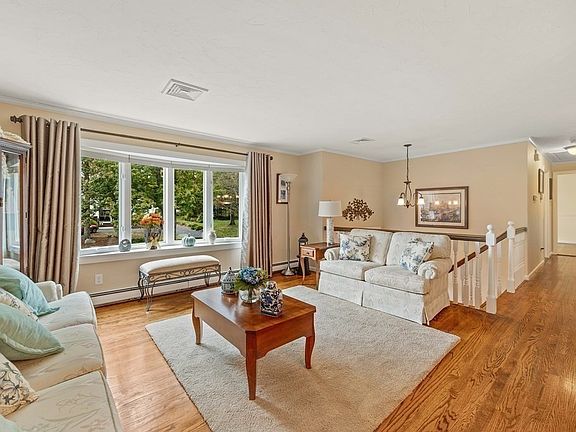 Stunning Expanded Raised Ranch w/3 bedrooms, 2 full baths in a neighborhood location with easy access to the expressway and local amenities. Upstairs, there’s an open floor plan with both a living room and a sunken family room(w/recessed lighting and vaulted ceilings) that leads you out to the wooden deck and well manicured backyard. Open from the dining room is the gorgeous warm, rich and stylish kitchen with upgraded cupboards & granite tops! Hardwood floors throughout. The main level bath is tiled and beautifully updated. Downstairs, the finished lower level has a fireplace family room, extra storage, a full bathroom, a separate laundry room, and the workshop! Updates includes the Roof, Windows, Central Air, Oil Tank, Boiler & Hot Water and much more! Inside and out shows excellent condition and pride of ownership. Welcome to Raynham.