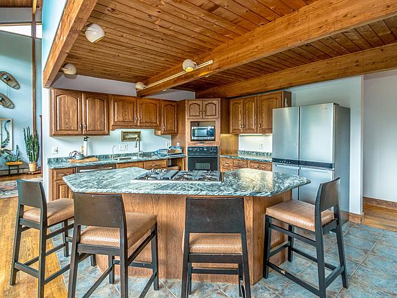 - Bar, Cathedral Ceiling(s), Cedar Closet(s), Dining Area, Kitchen Island, Kitchen/Dining, Natural Light, Natural Woodwork