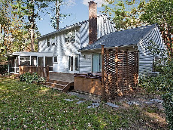 Nestled among mature trees, this 4 bedroom, 2.5 bath home sits atop rolling hills of the neighborhood with .42acres of private space. Several recent updates by the homeowners include recessed lighting, newer HVAC, water heater, roof, fully insulated attic, eat in kitchen, Trex composite decking, fully finished basement, second floor guest bath remodel and a brand new oversized washer and dryer. Loads of secluded outdoor space and plenty of driveway parking make this home an entertainer's dream! The main level provides both formal and every day living and eating areas and a custom kitchen with granite counters and hardwood cabinets. The newly finished basement provides additional entertainment options for you to explore. Ceiling fans located in every room for comfort and hardwood floors throughout! Simply choose your paint colors and move in.
