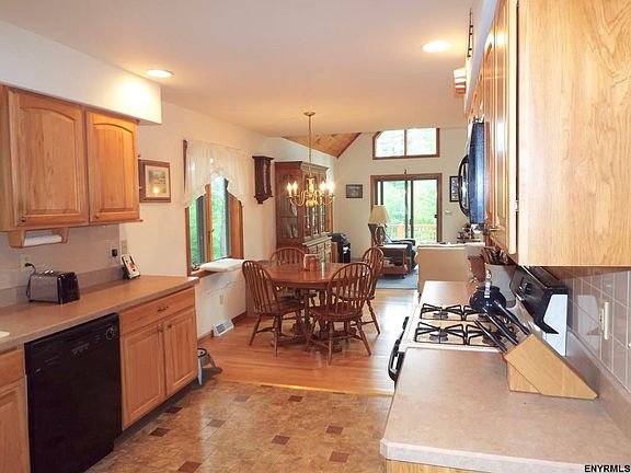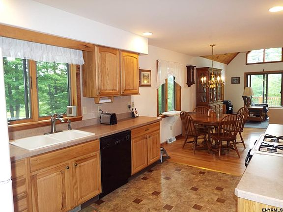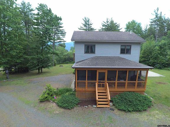 Solid and thoughtfully built, this 3 BR, 2 BA contemporary home is situated on 5 acres in the Pine Crest Development. Enjoy spacious floor plan, cathedral ceilings, hardwood floors, or take a soak in the hot tub on the screened in porch. Large windows create an abundance of light making this a warm and inviting home. The Great Sacandaga Lake with it's state launches & marinas offer lots of recreational activities. Saratoga Springs, just a short drive away. Large detached 2 car garage & low taxes