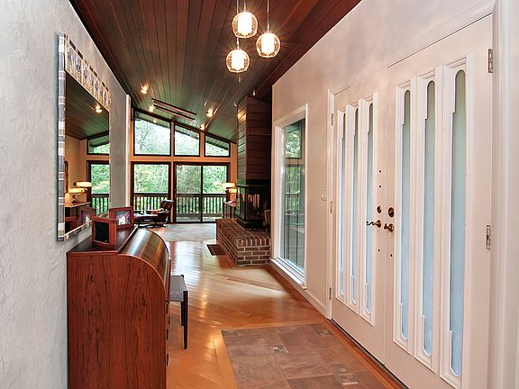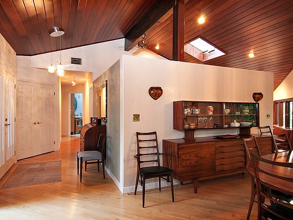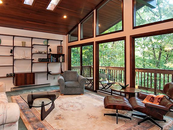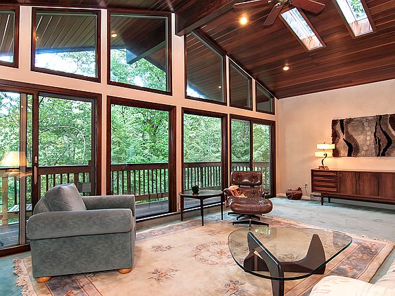 Peaceful home and cottage on wooded hillside above river offers exceptional living with vaulted redwood ceilings, skylights, wood floors, kitchen w/granite counters and casual seating w/gas fireplace. The expansive open dining room and step down vaulted family room, glass-walled wood fireplace, a wall of windows and balcony over the forest that drops off below, provides a suitable architecture for gracious entertaining and elevates daily life with a simple elegance. The beautiful kitchen features a triangular breakfast table that juts into the trees. The master bedroom, w/jacuzzi and private bath, opens onto an inground pool. There is a separate one-bedroom residence, w/a kitchen, full bath, living room. Perfect for multi-generational living or a great work studio! Very close to Clinton. Call to see it today!