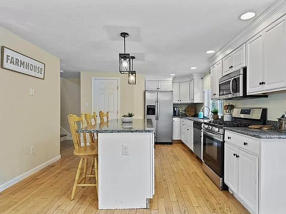 Unit 2 of this duplex style Townhouse is available for Rent 9/1/22. The sun filled living room has hardwood floors flow right into the spacious eat in kitchen boasting SS appliances, recessed lighting, a large island for seating granite counters, roomy dining area and half bath. The 2nd level is where you will find the primary and second bedroom featuring cathedral ceilings and tons of closet space. A full bath and convenient laundry round out this level. The finished basement has a third bedroom, large walkout family room, and another full bath. A large porch/deck that can be accessed from the kitchen, wraps around the house to the back yard is the perfect spot to sit, relax and enjoy the sounds of nature in your backyard. Central Air, storage shed, and paved drive with tons of parking. First and security due at signing. Utilities are NOT included.