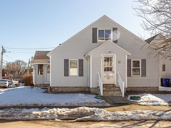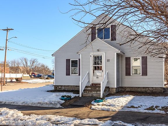 Welcome to 27 Pine Street! This 3 bedroom home sits on a corner lot with a 1 car detached garage to the side. The first floor features a little sunroom/mudroom entry area that leads into your kitchen. Off the kitchen you have a spacious living room and two good sized bedrooms. Rounding out the first floor you have a central full bathroom. The second floor features a large primary bedroom with carpet flooring and recessed lighting. This home has undergone many renovations including a new roof, new electrical, new hardwood floor on first floor, new insulation in basement among other things. Do not miss your chance to view this home as it won't last long!