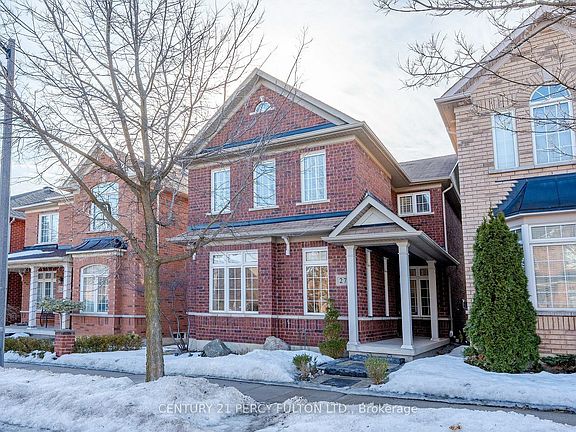 Welcome to 27 Pinecliff Ave Cornell's newest showstopper.. shows like a model home! This tastefully upgraded, all-brick detached home boasts 2077+ sqft of beautifully designed living space, offering afunctional layout that's perfect for modern living. As you step into the main floor, you're greeted by soaring 9 ft ceilings, big bright windows, and a formal living and dining room featuring custom built-in storage. The spacious family room, complete with a cozy fireplace, is perfect for relaxing or entertaining. The chefs kitchen has been completely upgraded with custom cabinetry, a pantry, and a charming banquette breakfast nook, all providing plenty of storage and style. The rear entrance, conveniently located by the kitchen, leads directly to the single-car garage. Upstairs, you'll find three generous-sized bedrooms, two of which feature walk-in closets! The primary suite offers a private retreat with a stunning4-piece ensuite bath, ensuring comfort and luxury. The finished basement provides additional flexible space whether you need a recreation room, office, or extra bedroom, the possibilities are endless! Curb appeal abounds with a beautiful stone entryway and a stone patio in the fully fenced backyard, creating an inviting outdoor space. Convenient location minutes from great schools, parks, Cornell Comm. Park, Markham Stouffville Hospital, shopping plazas, trails, 407 and more! Nothing to do here but move in and enjoy don't miss this !