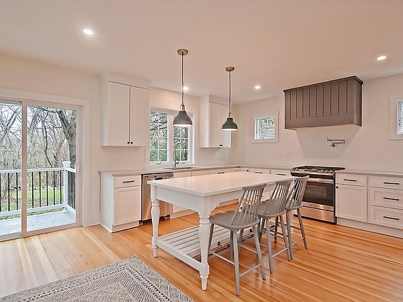 - Kit Dscrp: Main Level, Dining Area, Flooring - Hardwood, Countertops - Stone/Granite/Solid, Cabinets - Upgraded, Breakfast Bar / Nook, Kitchen Island, Stainless Steel Appliances, Open Floor Plan, Recessed Lighting, Remodeled, Slider, Pot Filler Faucet, Gas Stove, Lighting - Pendant