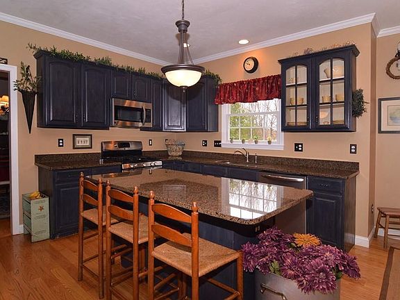 Beautifully maintained & tastefully crafted & appointed Contemporary Colonial in desirable "Canterbury Estates"; set on picturesque professionally landscaped lot with in-ground pool. Open Floor plan with 9ft ceiling on the first floor, two staircases and 2-story foyer. Kitchen features hardwoods, granite counter, center island, stainless steel appliances, separate eating area with sliders to patio and backyard. Step-down family room with wood burning fireplace, cathedral ceiling, skylights & hardwoods. Celebrate special occasions in the formal Dining Rm w/ hardwoods, wainscoting, crown molding & slider; open to Liv Rm with bow window, crown molding & hardwoods. 1st floor home office & separate mudroom w/ laundry. Spacious Master bedroom with sitting area & private updated bath with jetted tub, granite double-sink vanity & tiled shower. 3 bedrooms & main bath updated. Lower level is finished w/ game/play room, 5th bedroom & full bath, craft room & work space. Irrigation, Cent Vac, Shed