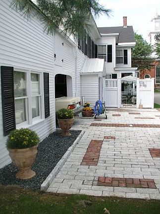 Excellent location, right in the Village, easy walk to everything. Renovated 1820 classic Woodstock Village residence with covered garage parking, updated kitchen, four bedrooms and 2 ½ baths, formal dining with bar/sink area, big living room in the front with classic old wide pine flooring. Expansion/storage space in large attic and above garage. Newer roof and furnace. Many replaced windows. 1st floor laundry (off kitchen). Original house is divided, this is left half (not a condo) with "brownstone-style" shared wall. Large walk-up attic spaces plus storage above the garage, and 2nd smaller enclosed garage workshop area. Charming outdoor patio just off kitchen. Attractive easy, in-town residence.
